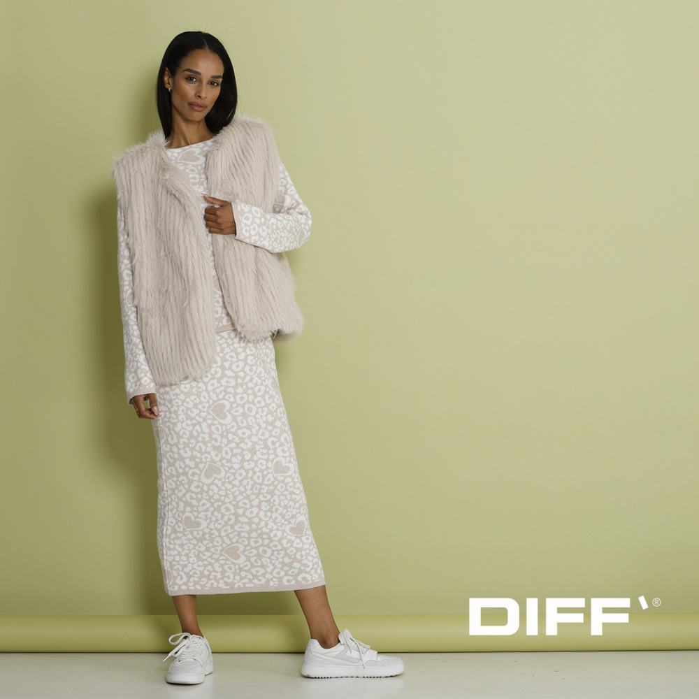 Die Kollektion reflektiert den Zeitgeist mit eigenem Stil und Klasse – Mode, die immer ein bisschen anders ist und doch immer sie selbst. Unverkennbar. Unverwechselbar. „Cross Styling“ ist die Idee der Kombinierbarkeit der Teile, die das perfekt abgestimmte Outfit ergeben. Es ist das subtile Aufeinandertreffen von scheinbar verschiedenartigen Einzelteilen. Scheinbare Widersprüche, die zueinander finden und trotzdem ein Bild ergeben: den DIFF` Fashion-Look.